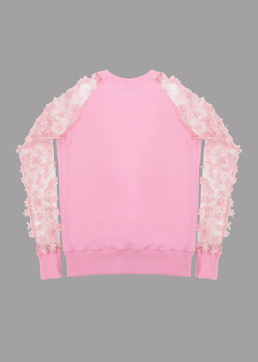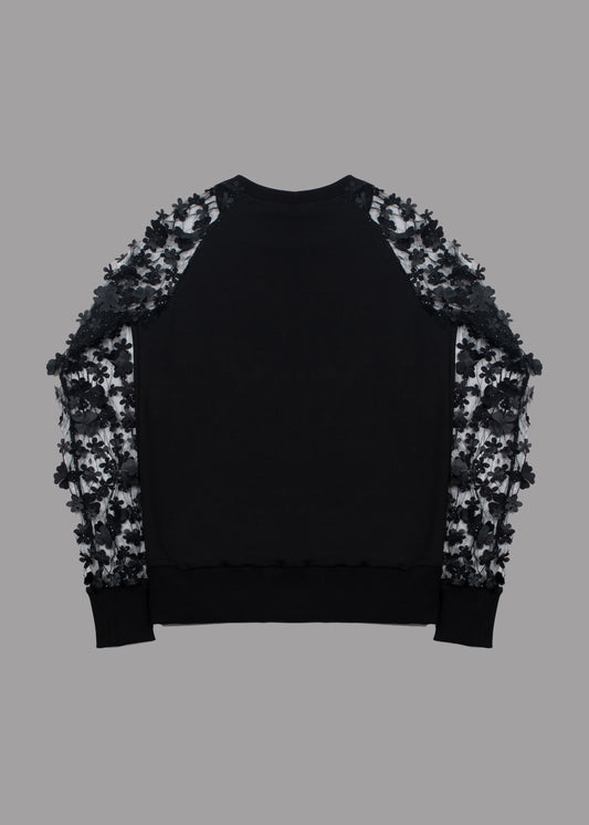 Women grey sweatshirt transparent sleeves with embroidered flowers
