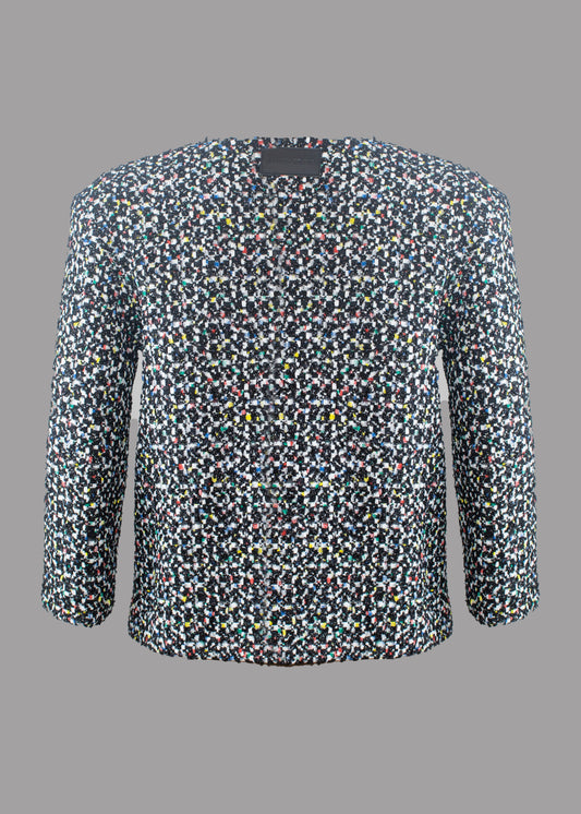 Women fine multicoloured tweed jacket A-line 3/4 sleeve