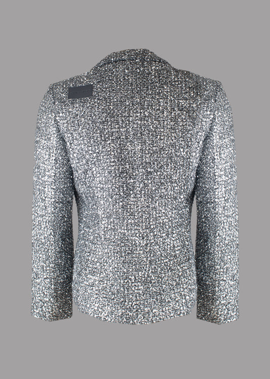 Women Fine Silver Tweed Blazer Slim Silhouette