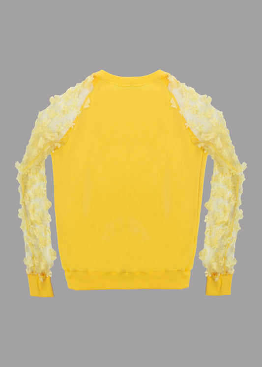 Women capri lemon blouse transparent sleeves with embroidered flowers