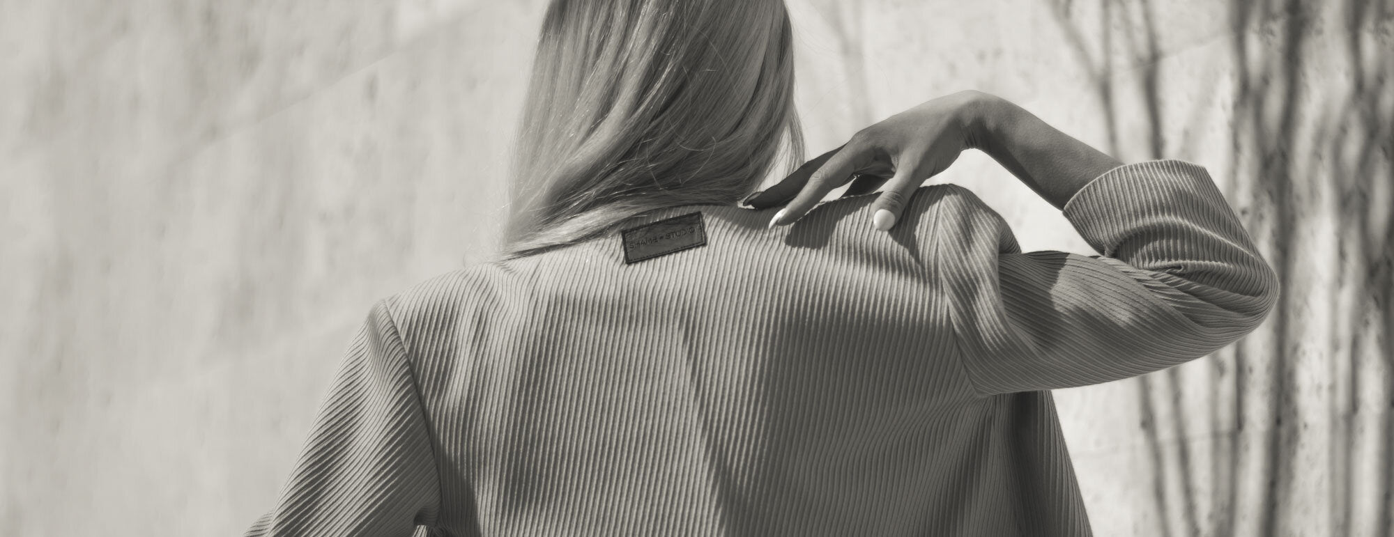The stitching itself is an art. Every single piece that is made under the label of Shame.Studio is sewn by the hands of our modiste. With extra care, the sewing of the t-shirts is very refine and neat. For the blazers and jackets the technique is as exqusite as you cannot even tell where the needlework is done, they are almost wearable even the other way around.